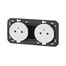 "DOOXIE". Mécanisme double de prises de courant 2 Pôles + Terre 16A à bornes automatiques. Puissance 3 680 W sous 230 V. Couleur blanc.