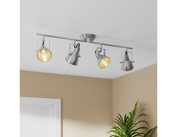 Le spot 4xGU10 chrome "Pervenche" avec une tête orientable. Ajoutez une touche décorative simple grâce à notre réglette chrome brossé Cooke & Lewis. Pour l'éclairage général Conseil d'entretien : Nettoyez avec un chiffon doux et sec Instructions de montage : Placez le produit dans la position souhaitée avant de le fixer. À l'aide des fixations fournies, fixez le produit au plafond. Fixations et instructions fournies. Garantie : 2 ans Normes : Classe 1, Conforme RoHS, EN60598. Ampoule non fournie. Matière : Métal Couleur : argent Puissance électrique : 7 W Tension d'alimentation électrique : 220 - 240V Type de fixation : à visser Type de montage : fixation par le haut Technologie d'éclairage : Led Type d'ampoule :MR16 Type de culot : GU10 Tête et tube réglables Diamètre 13 cm Dimensions : H. 22,5 x L. 82 x l. 13 cm Informations fournisseurs : Nom : Kingfisher International Products B.V. Adresse : Rapenburgerstraat 175E, 1011 VM Amsterdam, The Netherlands Site web : www.kingfisher.com/products