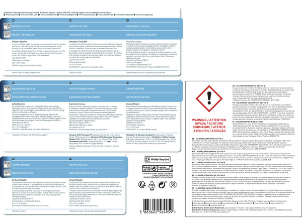 Cet absorbeur d'humidité réutilisable fait h. 18,9 x l. 16 x p. 11,2 cm. Le bac receveur ayant une contenance jusqu'à 0,9 L rend cet absorbeur d'humidité idéal pour des pièces jusqu'à 20 m².Ce récipient est compatible avec des anneaux ou des galets, neutres ou parfumés. Efficace, cet absorbeur protège des condensations, des moisissures et des odeurs de renfermé jusqu'à 6 semaines. Informations fournisseurs : Nom : Kingfisher International Products B.V. Adresse : Rapenburgerstraat 175E, 1011 VM Amsterdam, The Netherlands Site web : www.kingfisher.com/products