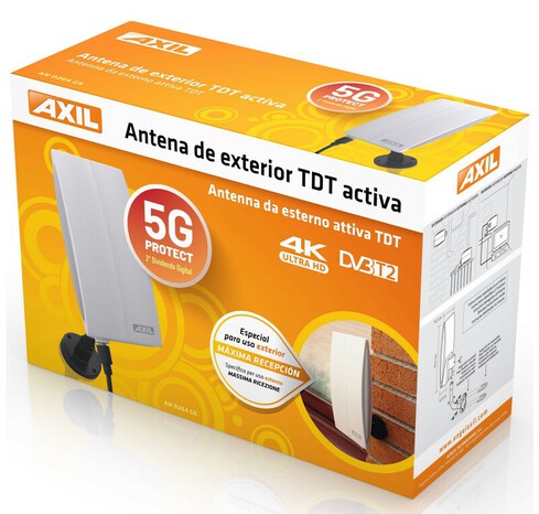 L'antenne intérieure/extérieure TNT amplifiée 5G avec une forme réctangulaire vertical. Fourni avec une visserie d'assemblage + support mural + câble coâxial + injecteur de tention et son alimentation AC/DC 5 Volts