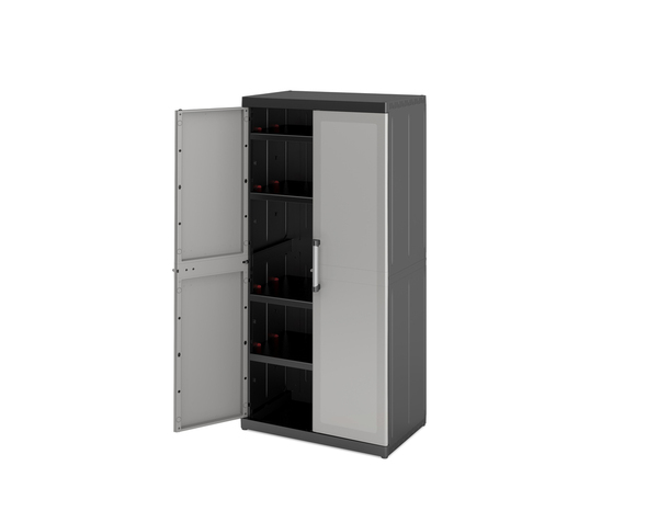 L'armoire haute en résine possèdes des étagères qui sont réglables pour optimiser la capacité de rangement. Elle peut être fermé avec un verrou (non fourni). Dimensions : Hauteur : 182 cm. Largeur : 89 cm. Profondeur : 54 cm. Poids : 22,95 Kg. Charge maximale par étagère: 25 Kg. Charge maximale : 135 Kg. Montage : Choisir le matériau de fixation adapté en fonction de votre mur. Pour tout autre type de mur, utiliser les chevilles murales et vis adaptées. En cas de doute, faire appel à un professionnel. Respecter les instructions de montage. Conseil d'entretien : Nettoyer à l'aide d'un chiffon doux humide. Sécher à l'aide d'un chiffon propre.
