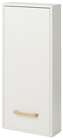 Caisson en PPSM* épaisseur 16 mm. Façade en MDF** épaisseur 16 mm. Finition extérieur et intérieur en feuille de polypropylène. 1 porte à fermeture amortie avec poignée en frêne. 2 tablettes ajustables en PPSM*. Charnières de porte en métal. Dimensions : L. 40 x H. 90 x P. 15 cm.