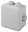 Boîte de dérivation carrée de 65 x 65 mm, série "Mureva". Installation en surface Avec système de verrouillage. 7 entrées Fournie avec 7 passe-câbles et un couvercle Profondeur 45 mm IP55