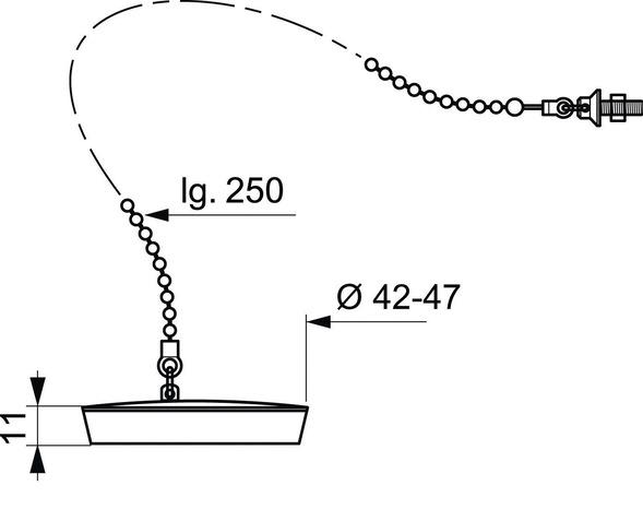 Bouchon pour évier grès Ø 47 mm et enjoliveur noir chainette 250 mm/ Avec attache