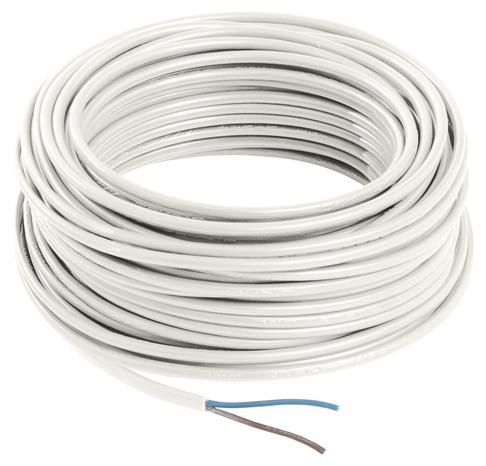Câble électrique H03VVH2F 2 x 0,75 mm² blanc - 25 m flexible et pratique pour vos installations intérieures. Idéal pour alimenter petits appareils électroménagers et luminaires. Longueur généreuse de 25 mètres pour une grande liberté d'installation. Conception plate facilitant le passage sous les tapis ou le long des murs. Couleur blanche discrète pour une intégration esthétique dans votre intérieur. Type de câble : H03VVH2F flexible Nombre de conducteurs : 2 fils (bleu et marron) Section des conducteurs : 0,75 mm² Longueur : 25 mètres Tension nominale : 240 V Conducteurs en cuivre multibrins souples Gaine extérieure en PVC (chlorure de polyvinyle) Câble plat non divisible pour une meilleure résistance mécanique Usage : intérieur, pour petits appareils électrodomestiques (lampes de chevet, lampes de bureau, sèche-cheveux, etc.)