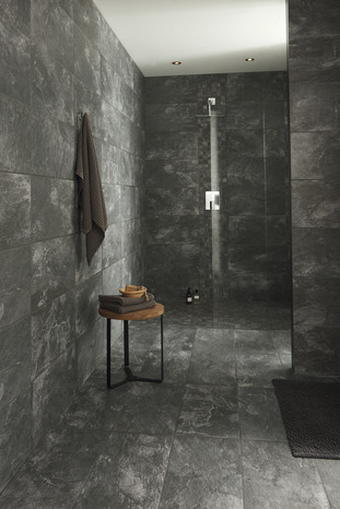 Carrelage intérieur modèle "Shaded" grès cérame émaillé d'aspect pierre adapté à la pose au sol et mur et compatible chauffage au sol.
