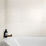 Faïence modèle "Alexandrina". largeur: 25 cm x Longueur: 40 cm. épaisseur: 8,3 mm. Coloris blanc cassé. Faïence murale finition brillante. Le carton de 1,5 m² (hors joint).