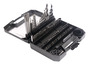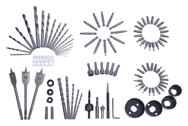 Coffret assortiment forets et embouts perçage vissage Universal de 100 pièces. Cet ensemble de forets mélangés universels est livré avec 100 pièces et peut être utilisé avec le bois, le métal, le plastique, la brique et le bloc de béton. Longueur : 250 mm Hauteur : 206 mm Fourni avec : 14 forets HSS (1 - 1,5 - 2 - 2,5 - 3 - 3,5 - 4 - 4,5 - 5 - 5,5 - 6 - 7 - 8 - 10 mm), 5 forets à béton (4 - 5 - 6 - 8 - 10 mm), 5 mèches à bois Brad Point (3 - 4 - 5 - 6 - 8 mm), 3 mèches à bois plates (16 - 22 - 25 mm), 40 embouts de vissage 25 mm (PZ0 - PZ1 - PZ2 - PZ3 - PH0 - PH1 - PH2 -PH3 - SL3 - SL4 - SL5 - SL6 - SL7 - H2 - H2.5 - H3 - H3.5 - H4 - H5 - H6 - T10 - T15 - T20 - T25 - T27 - T30 - T40), 12 embouts de vissage 50 mm (PZ1 - PZ2 - PZ3 - PH1 - PH2 - PH3 - SL4 - SL5 - SL6), 1 porte-embout magnétique 60 mm, 8 tourne-écrous (4 - 5 - 6 - 7 - 8 - 9 - 10 - 13 mm), 1 jauge de diamètre de perçage, 1 fraise conique (12,5x36 mm), 4 trépans (32 - 38 - 44 - 54 mm), 1 tige de trépan, 1 pointeau, 3 butées de profondeur de perçage (6 - 8 - 10 mm), 1 clé Allen et 1 coffret de transport en plastique. Informations fournisseurs : Nom : Kingfisher International Products B.V. Adresse : Rapenburgerstraat 175E, 1011 VM Amsterdam, The Netherlands Site web : www.kingfisher.com/products