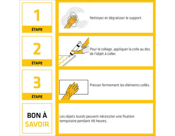 Rated 5 de 5 de Gwprs par Très bonne colle !Prise rapide et tenue fiable. Idéale pour mes petits travaux d’agencement. S’applique facilement et sèche vraiment vite. Je recommande.