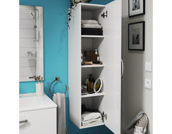 La colonne à suspendre Aruna allie design moderne et fonctionnalité optimale. Sa porte réversible offre une flexibilité d’ouverture à droite ou à gauche. Fabriquée à partir de bois issu de forêts écogérées, elle s’inscrit dans une démarche éco-responsable. Les étagères ajustables permettent une organisation personnalisée de votre espace de rangement. La poignée en métal chromé et le système de fermeture amortie garantissent durabilité et confort d’utilisation.