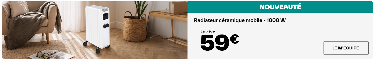 Sur notre site de bricolage pas cher comme en magasin Brico Dépôt près de chez vous, trouvez une sélection de radiateurs électriques mobiles adaptés à tous les besoins et à tous les budgets. Profitez de nos prix imbattables et arrivages à prix dépôt pour chauffer votre intérieur efficacement tout en réalisant des économies. Avec nos radiateurs mobiles, alliez confort thermique, praticité et petit prix.
