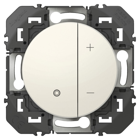 "DOOXIE". Mécanisme Interrupteur - Variateur 400 W. 2 fils. Couleur blanc. Pour allumer, faire varier et éteindre la lumière. S'installe à la place d'un interrupteur sans modifier le câblage (sans neutre).