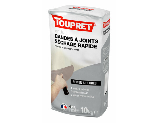 Enduit bandes à joints séchage rapide blanc. Facile à mélanger et à appliquer. Permet de lisser une surface. Pour une utilisation en intérieur. Peut être recouvert par tout enduit ou toute peinture ou tout revêtement mural classique. Informations fournisseurs : Nom : TOUPRET SA Email : alex@toupret.com Adresse : 24 rue du 14 juillet, 91100 CORBEIL-ESSONNES