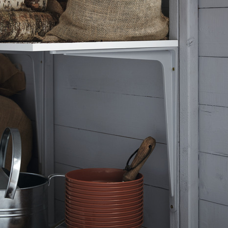 Équerre en aluminium mat (finition galvanisé) EMB2. Hauteur : 400 mm. Largeur : 38,5 mm. Profondeur : 450 mm. Épaisseur : 4,6 mm. Compatible avec des tablettes murales de 400 à 675 mm. Raccords et fixations non inclus. Informations fournisseurs : Nom : Kingfisher International Products B.V. Adresse : Rapenburgerstraat 175E, 1011 VM Amsterdam, The Netherlands Site web : www.kingfisher.com/products