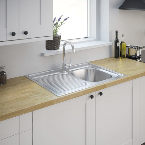 Modèle "MAYR" en inox. Dim: L.80 x l.60 x P.15 cm. Pour meuble sous-évier de 80 x 60 cm. Bonde à panier diam. 90 mm et siphon vendus séparément. Évier sans pré-perçage. Informations fournisseurs : Nom : Kingfisher International Products B.V. Adresse : Rapenburgerstraat 175E, 1011 VM Amsterdam, The Netherlands Site web : www.kingfisher.com/products