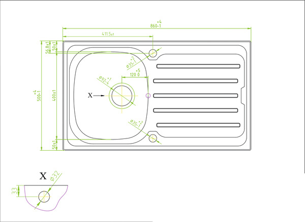 Rated 4 de 5 de Miche42 par Bon rapport qualité prixJ’ai installé cet évier il y a quinte jours. La tôle n’est pas très épaisse mais il reste d’une qualité acceptable pour le prix. L’intérêt c’est cette matière un peu striée qui le rend moins sensible aux rayures et traces. Pour le poser, j’ai choisi de ne pas encastrer complètement l’égouttoir et de simplement faire une rainure de 20 de profond. C’est plus compliqué à réaliser, mais le résultat est bon