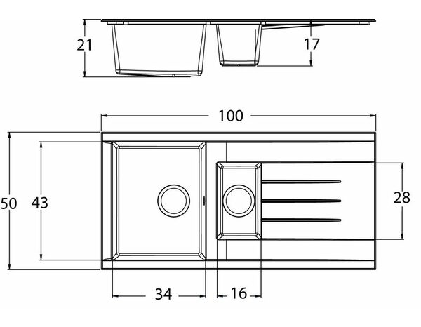 Cet évier modèle "ISING" est en résine, couleur noir. Dim: L.100 x l.50 x P.21 cm. Dim. d'encastrement : L.97 x l.48 cm. Pour caisson min. 60 cm. Bondes à panier diam. 90 mm et siphon vendus séparément.