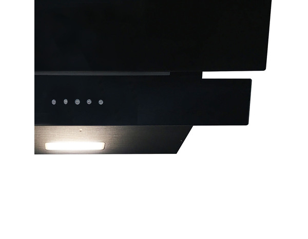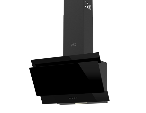 Cette hotte noire inclinée en verre L. 60 cm, possède 3 vitesses d'aspiration par recyclage ou évacuation avec une puissance d'extraction max de 381 m³/h.