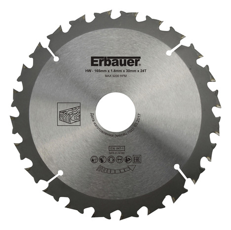 Lame de scie circulaire pour bois Ø165 x30/20/16 Grossière 24D TCT. Matériau : acier. Noyau pré-tendu avec dents à pointe en carbure de tungstène pour coupe grossière et déchirure de bois. Degré de rotation : 20°. Bague de réduction : 20 et 16 mm. Anti-rebond. Longueur des dents : 4,3 mm. Compatible avec la plupart des scies circulaires. Informations fournisseurs : Nom : Kingfisher International Products B.V. Adresse : Rapenburgerstraat 175E, 1011 VM Amsterdam, The Netherlands Site web : www.kingfisher.com/products