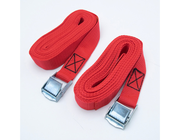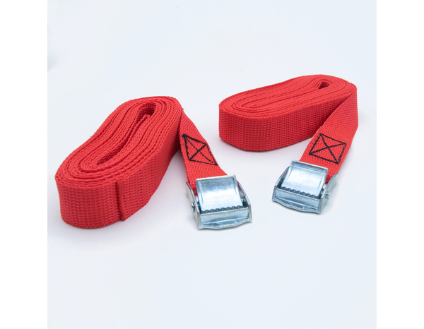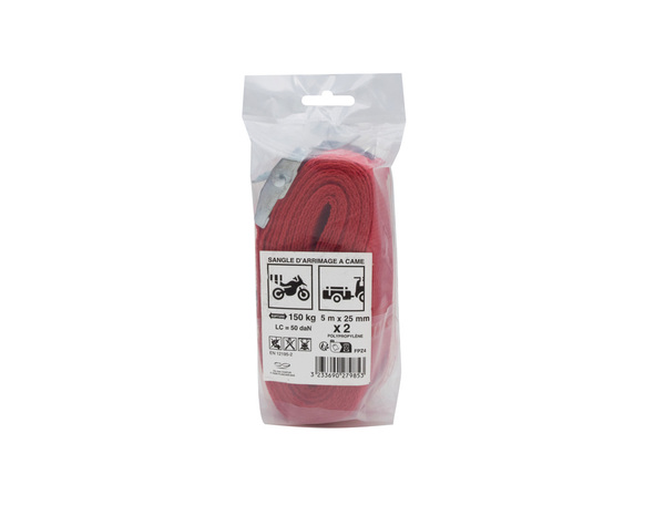 Ce lot de 2 sangles polypropylène avec came à griffes est utilisé pour l'arrimage léger et pour du multiusage. Cette sangle possède un bon allongement à la traction avant rupture, une bonne résistance à la rupture, à l'abrasion et aux UV. Elle est imputrescible et donc utilisable en extérieur. Sa tension maximale d'utilisation est de 50 kg. Coloris assortis. Dimension : Largeur 25 mm - Longueur 5 m -