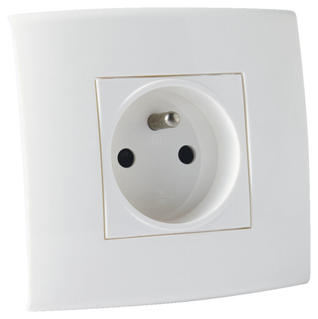 Lot de 5 prises avec terre "Kobé" blanc. Informations fournisseurs : Nom : Kingfisher International Products B.V. Adresse : Rapenburgerstraat 175E, 1011 VM Amsterdam, The Netherlands Site web : www.kingfisher.com/products