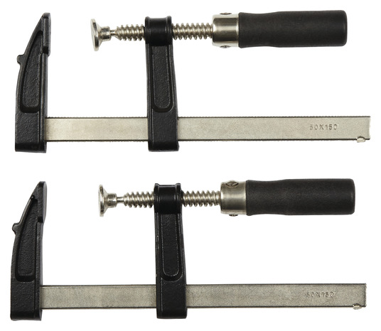 Lot de 2 serre-joints 50 x 150 mm (GR06) avec poignée intelligente pour un plus grand transfert de couple et plus de confort. La conception de barre industrielle permet au serre-joints de tenir debout. Doté d'un capuchon de protection qui empêche tout dommage causé au matériau. Doté d'une conception I-beam pour une plus grande résistance mécanique et moins de torsion. Doté d'une tige et d'un axe nickelés.