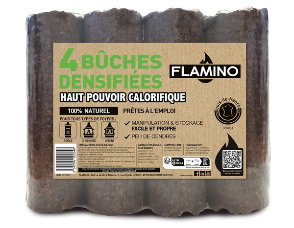 Pour un hiver au chaud Ce lot de 4 bûches de bois compressé vous aidera à attiser la flamme de votre âtre. Ces bûches remplaceront les bûches de bois classiques pour un rendement encore plus grand. Leur pouvoir calorifique est supérieur à 4,6 kWh/kg, ce qui est bien plus que le bois de chêne ou de charme, les essences naturelles ayant le plus haut pouvoir calorifique. Ceci s'explique par la compression de la matière qui ne laisse pas de place à l'air ou à l'humidité. Grâce à ces bûches, vous serez bien au chaud durant l'hiver. Des bûches faciles à utiliser Ces bûches s'utilisent comme du bois classique, il suffit de les placer dans l'âtre et de les allumer avec du petit bois ou encore du papier journal. Elles sont compatibles avec les cheminées, les inserts et les poêles à bois. Selon le réglage du poêle ou de l'insert, mais aussi du matériau de l'appareil (tôle, fonte, stéatite, etc.), chaque bûche de bois compressé offre une combustion qui dure de 1 à 3 heures. De fabrication française, ces bûches sont entièrement composées de sciures et de copeaux de bois. Matière : 100% sciure et copeaux de bois compressés Dimensions : Longueur : 28 cm x Diamètre : 9 cm Pouvoir calorifique : Supérieur à 4,6 kWh/kg Durée de chauffage : 1 à 3 heures selon l'appareil Utilisation : Prêt à l'emploi Destination : Pour poêle à bois ou cheminée Quantité : 4 Pays de fabrication : France Bonnes pratiques : Stockez le combustible sous abri, ventilé et aéré. Utilisez une bûche compatible avec de la taille de votre foyer, insert ou poêle à bois. Procédez à l'allumage inversé : Disposez les bûches en parallèle dans l'appareil. Mettez quelques allume-feux bois ainsi que du bois d'allumage sec au dessus et allumez-les. Bonnes pratiques : Pour toutes informations complémentaires, veuillez suivre les bonnes pratiques émises par l’Agence de l’environnement et de la maitrise de l’énergie, Comment bien se chauffer.
