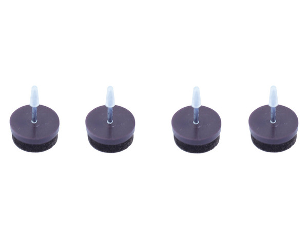 Lot de 4 coussinets en feutre à clouer marron, 20 mm de diamètre. Matière : Acrylonitrile-butadiène-styrène (ABS), polystyrène (PS) et acier. Utilisation à l'intérieur sur la moquette, le parquet, les stratifiés et le carrelage. Protège le parquet en prévenant les marques et réduit les bruits dûs aux mouvements. Informations fournisseurs : Nom : Kingfisher International Products B.V. Adresse : Rapenburgerstraat 175E, 1011 VM Amsterdam, The Netherlands Site web : www.kingfisher.com/products