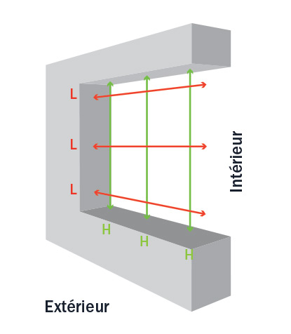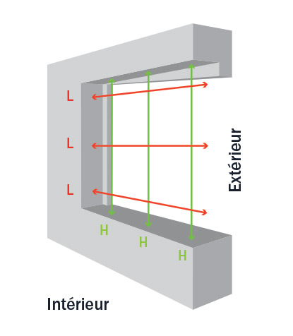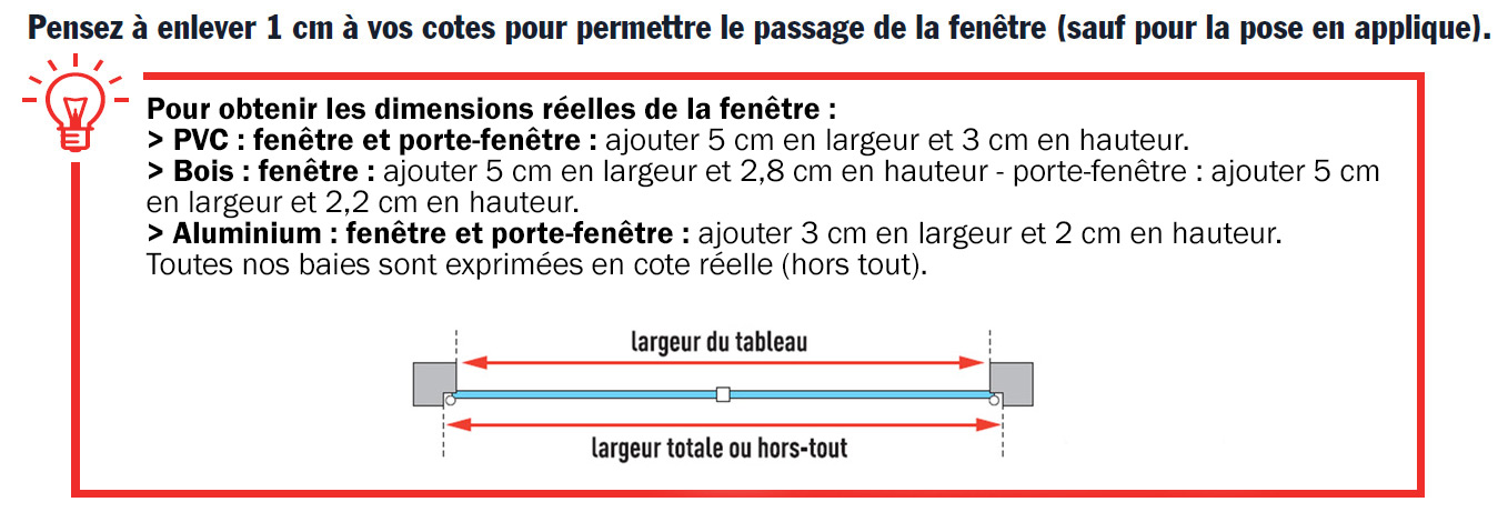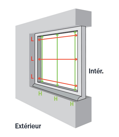 À l’extérieur de l’habitation, je prends les mesures à l’intérieur de la maçonnerie en 3 points (retenir la valeur la plus grande). Choisir ses fenêtres selon les dimensions tableau.