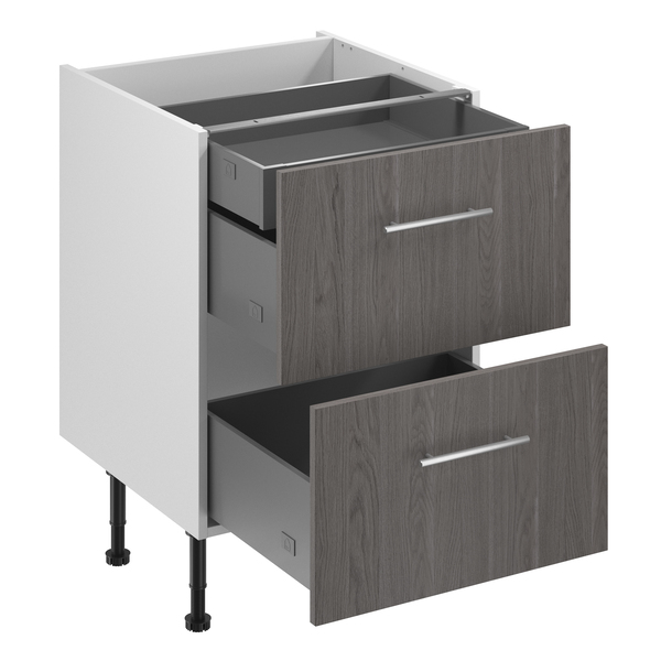Chez Brico Dépôt nous vous donnons la possibilité de composer votre Meuble bas "Basilie" imitation chêne gris l.60 x h.72 x p.57 cm 2 casseroliers + 1 tiroir intérieur haut vous même en achetant chaque élément séparément.