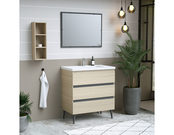 Miroir gris "style" l.80 x h.60 x p.2 cm Dimensions : L.80 x H.60x P.2 cm Fond en panneau de particules ép. 15mm, finition gris anthracite. Vis et chevilles de fixation non fournies.