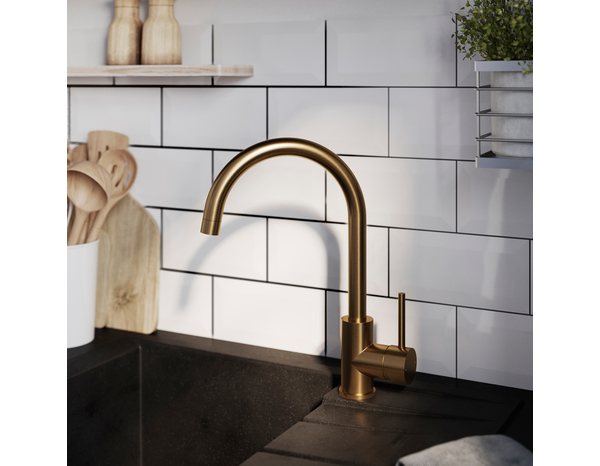 Ce mitigeur pour évier de cuisine "Katiki" de couleur laiton brossé est parfait pour les familles qui cherchent des performances exceptionnelles et un design élégant. Ce robinet est un produit écologique, plus sain pour la famille. Ce robinet de cuisine dispose d'un bec anticalcaire et pivotant à 360° et de flexibles prémontés. Ce robinet de cuisine mélange l'eau chaude et l'eau froide. Teneur en plomb réduite dans le corps en laiton et les pièces d'hygiène en contact avec l'eau. Conseils d'entretien : N'utilisez pas de produit chimique agressif pour nettoyer ce produit. Instructions de montage : Serrez uniquement à la main et ne serrez pas trop lors de l'installation des flexibles sur le robinet. N'enroulez ou ne pliez jamais le flexible pendant le montage, car cela risque de l'endommager ou de l'user, et de provoquer des fuites. Conseils d'utilisation : Avant l'installation, purgez soigneusement les tuyaux d'eau chaude et froide pour empêcher la pénétration de poussière pouvant compromettre le fonctionnement du mitigeur. Inclus : 1 robinet, 2 flexibles à raccord BSP 3/8", 1 kit de fixation et notice. Caractéristiques : Matière : Laiton, acier inoxydable et zinc Couleur : Laiton brossé Type de robinet : Levier latéral Type de bec : En forme de U Type de cartouche de robinet : Cartouche céramique 35 mm Type de connexion : Raccord BSP Une seule arrivée d'eau Jet de pulvérisation fixe Réducteur de débit de remplacement Avec dispositif anti-calcaire Débit minimal : 5.5 L/min - Débit maximal : 8 L/min Avec économiseur d'eau Dimensions : P. 22.8 x H. 33.5 x l. 4.8 cm Diamètre de la tête : 10 mm Longueur du flexible : 36 cm Diamètre du flexible : 6 mm Normes : EN 817, Certifié ACS et WRAS. Garantie 10 ans. Découvrez la marque COOKE & LEWIS disponible chez Brico Dépôt. Aménager, équiper et décorer chaque pièce de la maison avec des produits de qualité : les produits Cooke & Lewis. La marque saura combler vos attentes en alliant style et qualité. Meubles de cuisine, équipements pour la salle de bains, différents modèles de sols, luminaires et produits pour le rangement de la maison… Informations fournisseurs : Nom : Kingfisher International Products B.V. Adresse : Rapenburgerstraat 175E, 1011 VM Amsterdam, The Netherlands Site web : www.kingfisher.com/products
