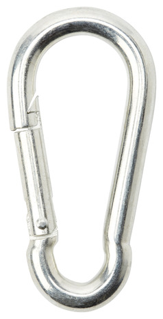 Mousqueton en acier. S'accroche à une chaîne ou à une corde. Capacité de charge maximale : 200 kg.