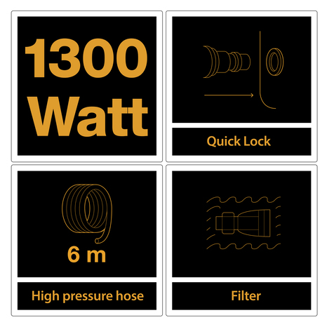 Ce nettoyeur haute pression "TITAN" 100 Bar 220 -240 V /1300 W ref MPWP100D-3 possède une poignée anti-dérapante et confortable et un manche droit avec un tuyau haute pression d'une longueur de 6 mètres. Il a un débit maximal de 390 L/hr, un moteur refroidi par air avec balai universel et une pompe à plateau oscillant. Doté également d'un arrêt de sécurité et d'un filtre d'arrivée d'eau, sa pression de fonctionnement est de 100 bar au maximum et 10 bar au minimum. La température supportée est de 50°C. au maximum et 0°C. au minimum. La longueur de son flexible est de 6 m. et la longueur de câble, 5 m. Taille de connexion : 8 mm. Capacité du réservoir de détergent : 250 ml. Niveau de bruit : 83 dB(A). Tous les accessoires sont conçus pour être intégrés dans l'appareil, ce qui assure un rangement compact. Dimensions produits Profondeur : 22 cm Hauteur : 46 cm Largeur : 24 cm Poids : 5,4 kg. Instruction de stockage : Coupez le robinet d'arrivée d'eau. Libérez la pression résiduelle du pistolet jusqu'à ce que la totalité de l'eau se soit écoulée de l'appareil. Mettez l'appareil hors tension (position off/0). Débranchez la fiche de la prise. Vidangez et nettoyez le réservoir à détergent à la fin du travail. Pour laver le réservoir, utilisez de l'eau propre plutôt que du détergent. Enclenchez le loquet de sécurité du pistolet. Traitez l'appareil avec un antigel non corrosif et non toxique avant de le ranger pour l'hiver. Placez l'appareil dans un endroit sec, à l'abri du gel. Garantie 2 ans Informations de sécurité : Le produit ne doit pas être utilisé par des enfants. Les jets haute pression peuvent s'avérer dangereux s'ils sont mal utilisés. N'orientez jamais le jet vers des personnes, ni vers un équipement électrique sous tension ou vers le produit lui-même. Informations fournisseurs : Nom : Kingfisher International Products B.V. Adresse : Rapenburgerstraat 175E, 1011 VM Amsterdam, The Netherlands Site web : www.kingfisher.com/products