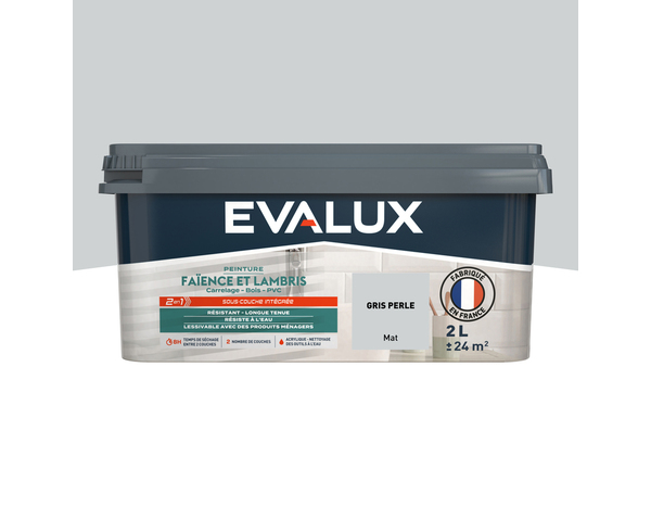 La peinture faïence et lambris Mat 2 L Gris Perle est spécialement conçue pour les cuisines, les salles de bains et les couloirs. Elle est résistante à l'eau et lessivable, elle supporte donc le nettoyage fréquent des pièces humides. Vous pouvez également utiliser des produits de nettoyage ménagers pour éliminer les taches. Elle convient à une utilisation sur bois (brut, verni, peint), lambris en PVC, carrelages muraux en faïence, grès cérame... Elle peut également être appliquée sur le carrelage des parois de douche Préparer votre support pour obtenir un bon résultat. Les surfaces à peindre doivent être saines, propres et sèches Retirez les joints siliconés avant de peindre. Vous pourrez les refaire après avoir appliqué la peinture Bois neuf ou brut: poncer légèrement et dépoussiérer. Appliquer une sous-couche isolante sur les bois exotiques et riches en tanins (chêne) PVC et bois verni ou peint: Lessiver avec un nettoyant à base de soude, rincer puis laisser sécher. Egrener puis dépoussiérer les peintures ou vernis bien adhérents Carrelage brut: Lessiver avec un nettoyant à base de soude pour éliminer les résidus de corps gras ou moisissures. Il est important d'insister sur les joints. Rincer et laisser sécher Carrelage peint: Lessiver avec un nettoyant à base de soude, rincer puis laisser sécher. Egrener puis dépoussiérer les peintures bien adhérentes. Support peint ou verni en mauvais état: poncer pour revenir au support brut et dépoussiérer Conseils d'utilisations : Retirer le sachet d'additif du couvercle, le vider intégralement dans la peinture et mélanger soigneusement pendant 2 min avec une baguette en insistant sur les parois et le fond du pot. Appliquer à l'aide d'un pinceau ou d'un rouleau en mousse floquée, à une température ambiante comprise entre 10°C et 25 °C Appliquer deux couches de peinture pour un résultat optimal. Laisser sécher environ 8 heures entre deux couches. Ne pas revenir sur votre travail en cours de séchage. Un pot permet de peindre environ 24 m². Une fois l'additif ajouté dans la peinture, le mélange doit être utilisé dans les 7 jours pour conserver les performances d'adhérence et de résistance. Il faut environ 10 jours pour que la peinture durcisse complètement. Pendant cette période, évitez de solliciter votre support (chocs, taches, nettoyage...) Entretenir la surface peinte avec un détergent doux et une éponge non abrasive. Ne convient pas aux surfaces planes où l'eau peut stagner. Péparation : Préparer votre support pour obtenir un bon résultat. Les surfaces à peindre doivent être saines, propres et sèches Retirez les joints siliconés avant de peindre. Vous pourrez les refaire après avoir appliqué la peinture Bois neuf ou brut: poncer légèrement et dépoussiérer. Appliquer une sous-couche isolante sur les bois exotiques et riches en tanins (chêne) PVC et bois verni ou peint: Lessiver avec un nettoyant à base de soude, rincer puis laisser sécher. Egrener puis dépoussiérer les peintures ou vernis bien adhérents Carrelage brut: Lessiver avec un nettoyant à base de soude pour éliminer les résidus de corps gras ou moisissures. Il est important d'insister sur les joints. Rincer et laisser sécher Carrelage peint: Lessiver avec un nettoyant à base de soude, rincer puis laisser sécher. Egrener puis dépoussiérer les peintures bien adhérentes. Support peint ou verni en mauvais état: poncer pour revenir au support brut et dépoussiérer Informations fournisseurs : Nom : Kingfisher International Products B.V. Adresse : Rapenburgerstraat 175E, 1011 VM Amsterdam, The Netherlands Site web : www.kingfisher.com/products