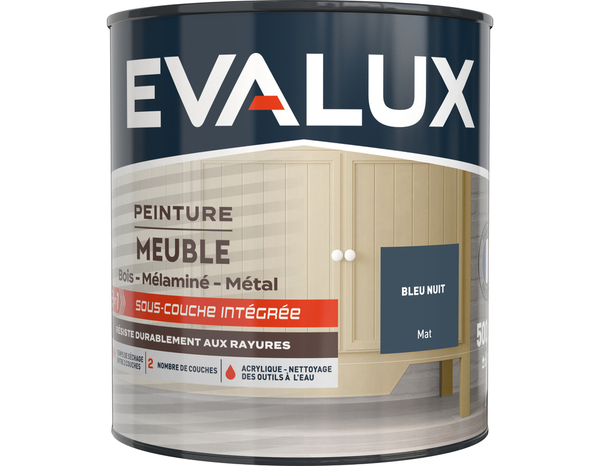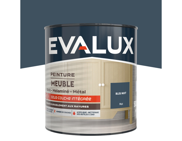 La peinture meuble Mat 0,5 L Bleu Nuit est idéale pour transformer votre mobilier d'intérieur. Lessivable et résistante, elle vous assure une tenue longue durée. Elle convient à une utilisation sur bois (nu, verni, peint), mélaminé et métal. Conseils d'utilisation : Mélanger soigneusement avant utilisation. Appliquer à l'aide d'un pinceau ou d'un rouleau laqueur, à une température ambiante comprise entre 10 °C et 25 °C. Appliquer deux couches de peinture pour un résultat optimal. Laisser sécher environ 8 heures entre deux couches. Un pot permet de peindre environ 6 m². Il faut environ 10 jours pour que la peinture durcisse complètement. Pendant cette période, évitez de solliciter votre support (chocs, taches, nettoyage...) Préparation : Préparer votre support pour obtenir un bon résultat. Les surfaces à peindre doivent être saines, propres et sèches et dépoussiérées Reboucher les trous et imperfections avec une pâte ou un mastic adaptés. Bois neuf ou brut: poncer légèrement et dépoussiérer. Appliquer une sous-couche isolante sur les bois exotiques et riches en tanins (chêne). Sur mélaminé, stratifié, bois déjà peint ou verni: dégraisser, lessiver et rincer puis poncer et dépoussiérer. Pour les métaux ferreux, il est conseillé d'appliquer un primaire anti corrosion sur les parties pouvant s'oxyder. Lors du ponçage, portez un masque pour éviter d'inhaler la poussière Informations fournisseurs : Nom : Kingfisher International Products B.V. Adresse : Rapenburgerstraat 175E, 1011 VM Amsterdam, The Netherlands Site web : www.kingfisher.com/products