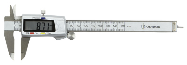 Le pied à coulisse digital 150 mm Magnusson est doté d'un affichage LCD avec des caractères pour mesurer jusqu'à 2 chiffres en millimètres. Les faces de mesure meulées avec précision permettent les mesures à l'extérieur, à l'intérieur, de la profondeur et par étape avec affichage des données. Doté de fonctions de mesure absolue et relative.