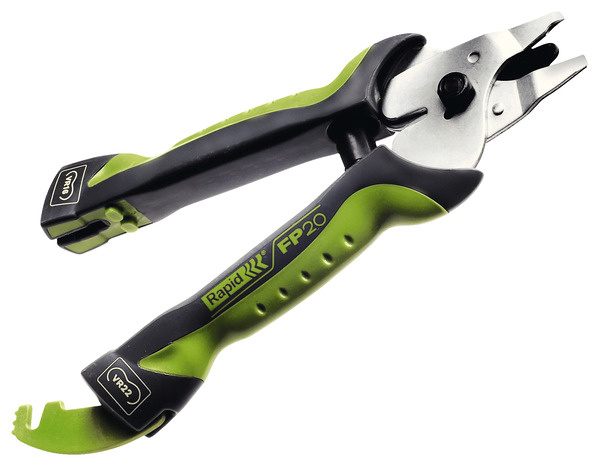 Servez-vous de la pince à grillage avec poignée ergonomique souple antidérapante pour mener à bien diverses applications telles que la fixation de grillage à un fil de torsion.//La pince à grillage de la marque Rapid convient aux agrafes VR16 et VR22. Il s’agit d’une pince à grillage polyvalente dont le diamètre de fermeture va jusqu’à 11 mm. Cet outil ne dispose pas d’un magasin de chargement d’agrafes et est garanti deux ans.//Cette pince à grillage avec poignée ergonomique souple antidérapante est très simple d’utilisation : elle vous permet de réussir différents travaux tel que la fixation de grillage à un fil de torsion. Elle possède une poignée ergonomique, souple et antidérapante. De plus, vous pourrez utiliser la fonction de verrouillage pour un rangement facilité. Poignée ergonomique. Grande souplesse d’utilisation. Pour agrafes VR16 et VR22.