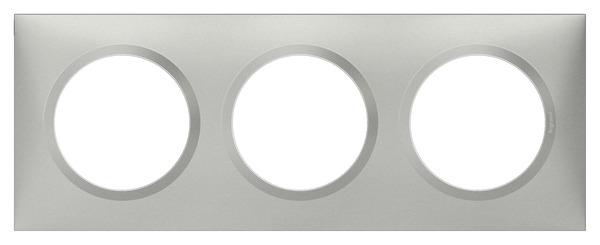 "DOOXIE". Plaque 3 postes ronde pour mécanismes "DOOXIE". Couleur aluminium. Montage horizontal ou vertical.