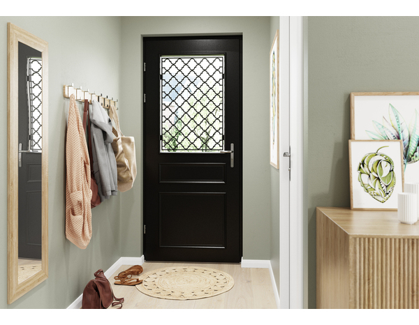 La porte entrée Méranti "Bragi" H. 215 x l. 90 gauche permettra de vous protéger avec sa bonne performance thermique optimisée grâce à un double vitrage et son isolation. Elle possède 7 points de verrouillage. Type de verre : verre de sécurité : feuilleté (extérieur) et trempé (intérieur) Type de charnière : réglable Serrure à cylindre avec clé réversible Profondeur du cadre : 6,8 cm Epaisseur du vitrage : 2,6 cm Hauteur : 218 cm Epaisseur du produit : 6,8 cm Largeur : 98 cm 4/4A/C3 Couleur : chêne noir Teinte : Noire RAL 9005 Finition du verre : transparent Matière : bois Méranti Poussant gauche Poignées incluses Système de verrouillage multipoint à 5 têtes de rouleau et pêne dormant Nombre de clés : 3 Poids : 68 Kg Insonorisation : 31 dB 1,3 W/m²K Informations fournisseurs : Nom : Kingfisher International Products B.V. Adresse : Rapenburgerstraat 175E, 1011 VM Amsterdam, The Netherlands Site web : www.kingfisher.com/products
