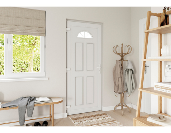 La porte entrée PVC blanc "Dilys" H. 215 x l. 90 droite permettra de vous protéger avec sa bonne performance thermique optimisée grâce à un double vitrage et son isolation. Elle possède 5 points de verrouillage.