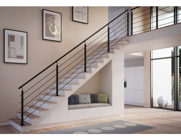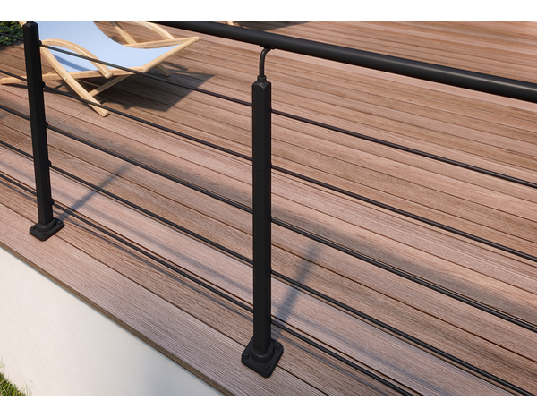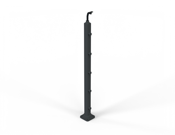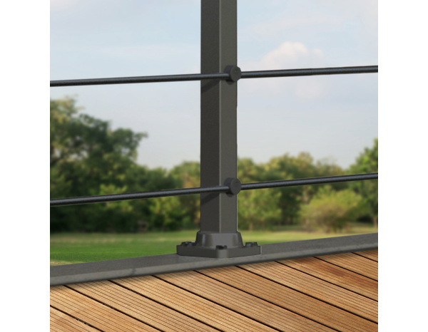 Poteau de fixation à plat noir RAL 9005 : poteau carré diam. 40 mm, hauteur réglable. Poteau pour montage à plat sur terrasse, escalier, mezzanine. Pour une fixation au sol