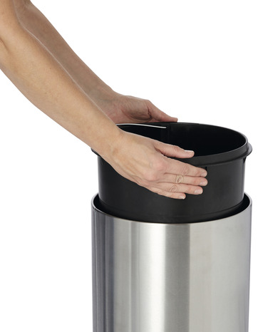 Ø 31,5 x H. 64,5 cm. Acier inox anti-traces. Bac intérieur plastique.