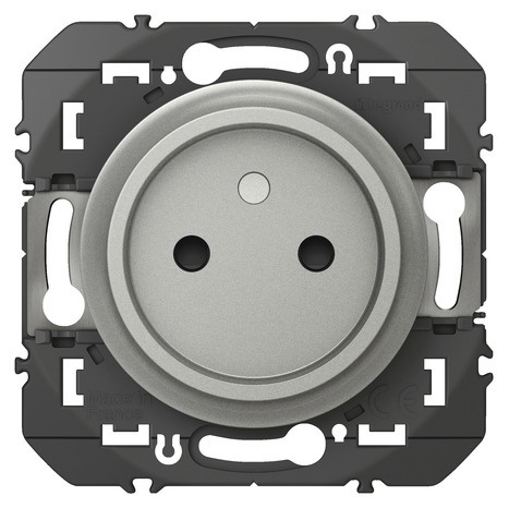 "DOOXIE". Mécanisme de prise de courant 2 Pôles 16A à bornes automatiques. Puissance 3 680 W sous 230 V. Couleur aluminium.