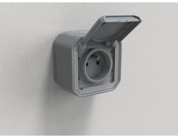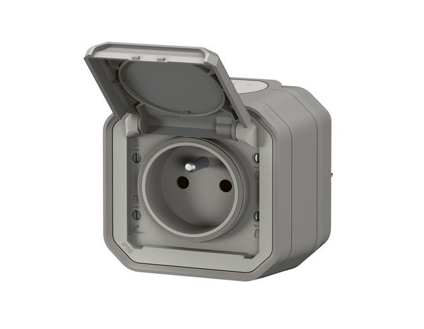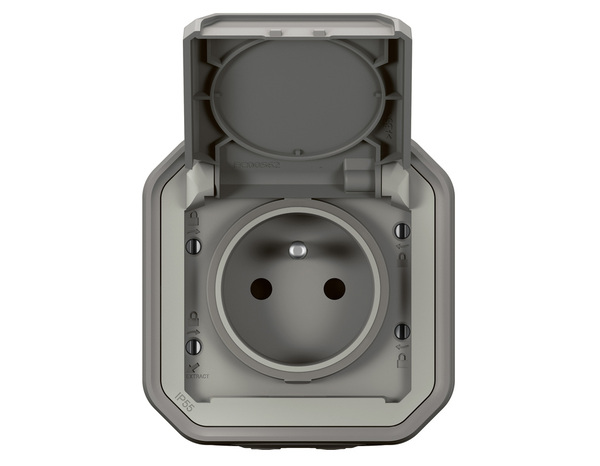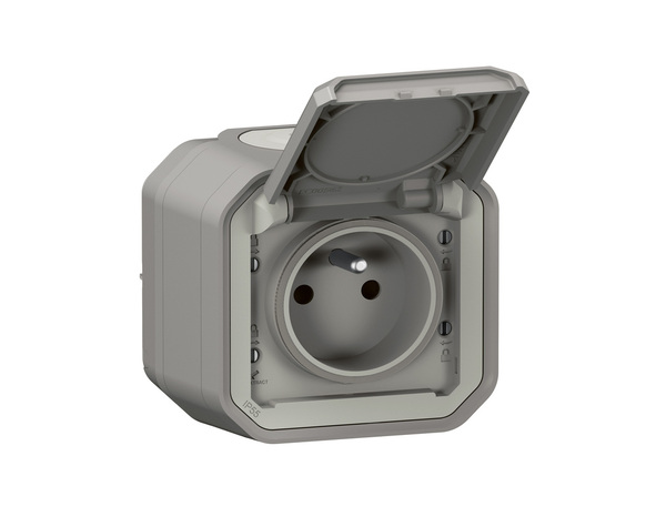 Cette prise de courant 2 P+T avec volet Plexo complet saillie grise 16 A 250 V dispose d'une connexion rapide sans outil et d'un repérage couleur. Il est étanche et robuste : IP55 : protégé contre les poussières et les projections d'eau à la lance de toutes directions et IK08 : résistance à un choc de 5 joules. Ce système d’appareillage étanche est destiné au lieux techniques résidentiels et professionnels (garages, caves, parkings, ateliers et cuisines industrielles...) ainsi qu’aux environnements extérieurs (terrasses, jardins, campings...).