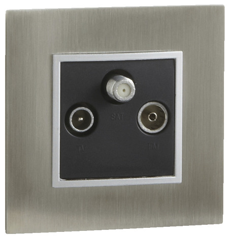 Prise TV/FM/SAT noir. Informations fournisseurs : Nom : Kingfisher International Products B.V. Adresse : Rapenburgerstraat 175E, 1011 VM Amsterdam, The Netherlands Site web : www.kingfisher.com/products