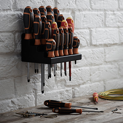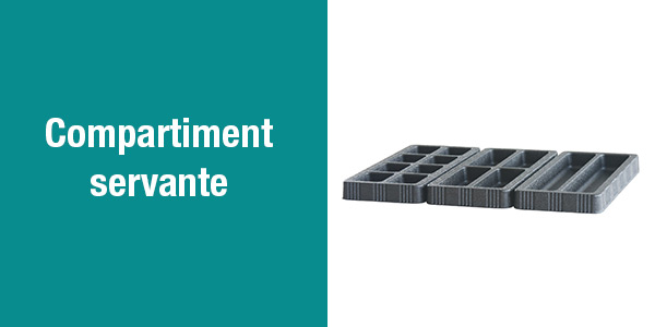 Astuces de composition : Les accessoires de rangements sont nombreux et peuvent s'ajouter directement sur votre servante et votre chariot d’atelier. Il existe des accessoires pour le rangement de clés, de tournevis, de consommables comme des forêts ou encore pour l’essuie-tout. Pour ranger des petites pièces, optez pour des compartiments à insérer dans les tiroirs de votre servante pour les petits outils à main ou la visserie. Vous avez également la possibilité d’opter pour un panneau porte-outils mural avec des crochets pour accrocher tous vos produits pour une finition professionnelle.