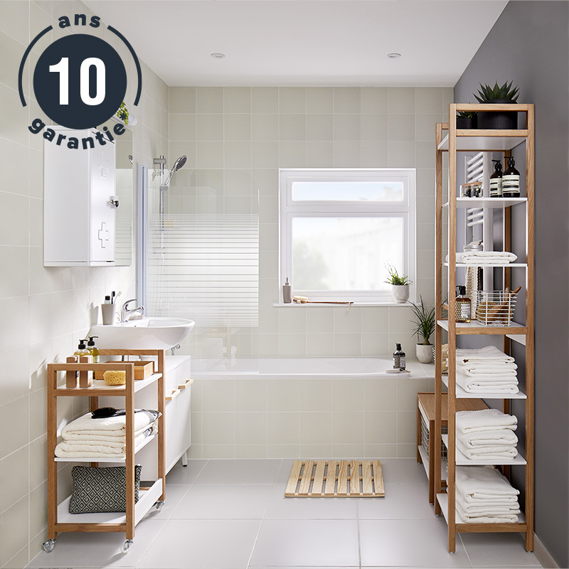 Une fois les travaux de peinture, de pose du carrelage au sol et de la faïence sur les murs, le travail de déco commence. Les modèles de salle de bains chez Brico Dépôt répondent parfaitement à vos besoins en vous offrant des solutions adaptées à vos projets de rénovation de votre salle de bains. Il est facile d’imaginer l’aménagement de cette pièce avec les meubles de salle de bains Imandra bois ou blanc, qui d’adapte à tous les espaces et à toutes les salles de bains : faites le choix d’une salle de bains pratique, tendance et design. Pour les petits espaces, optez pour des meubles gain de place de faible profondeur : les meubles de salle de bains Slim et Ladoga vous apporteront confort et espace à coté de votre douche à l’italienne, de votre baignoire ou de votre lavabo. Dans l’aménagement et la conception de votre salle d’eau, nos vendeurs en dépôt sont là pour vous accompagner dans la réalisation de votre projet : Devez-vous placer votre meuble à coté de votre bain ? l’armoire murale serait-elle mieux proche de la douche ou des toilettes ? Ils vous aideront à optimiser l’espace de votre salle d’eau, à harmoniser les produits entre eux pour vous proposer la meilleure combinaison possible, et vous apporteront conseils et idées pour mener vos travaux à bien. Dédiée à la détente et au bien-être, la salle de bains est un élément central de la maison. Brico dépôt vous propose une sélection de meubles de salle de bains, douches, lavabos, vasques, baignoires ou encore robinets et accessoires de salle de bains à prix bas et en quantité chantier. N’ayez plus peur de vous lancer, nous avons tous ce qu’il vous faut pour l’aménagement et la réalisation de vos travaux dans votre salle de bains.