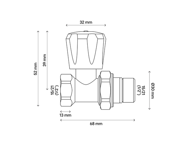 Robinet de radiateur manuel droit en laiton nickelé avec raccordement en 1/2" (15x21) et muni d'un joint torique pour une étanchéité parfaite. Il convient pour tous les radiateurs en 15/21.