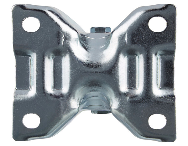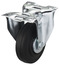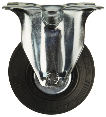 Roulette pivotante Ø 100 mm. Monture zinguée, roue caoutchouc noir. Charge maxi 75 kg. Fixation platine 105 x 85 mm. Pour présentoirs.